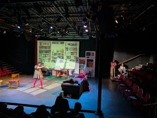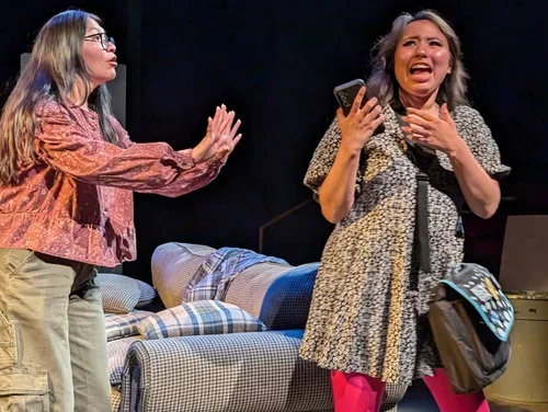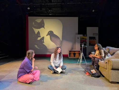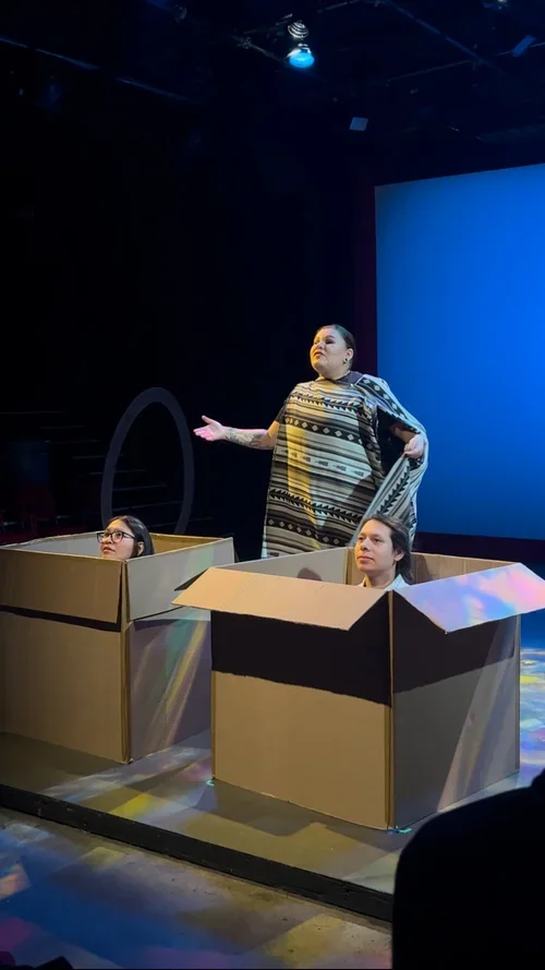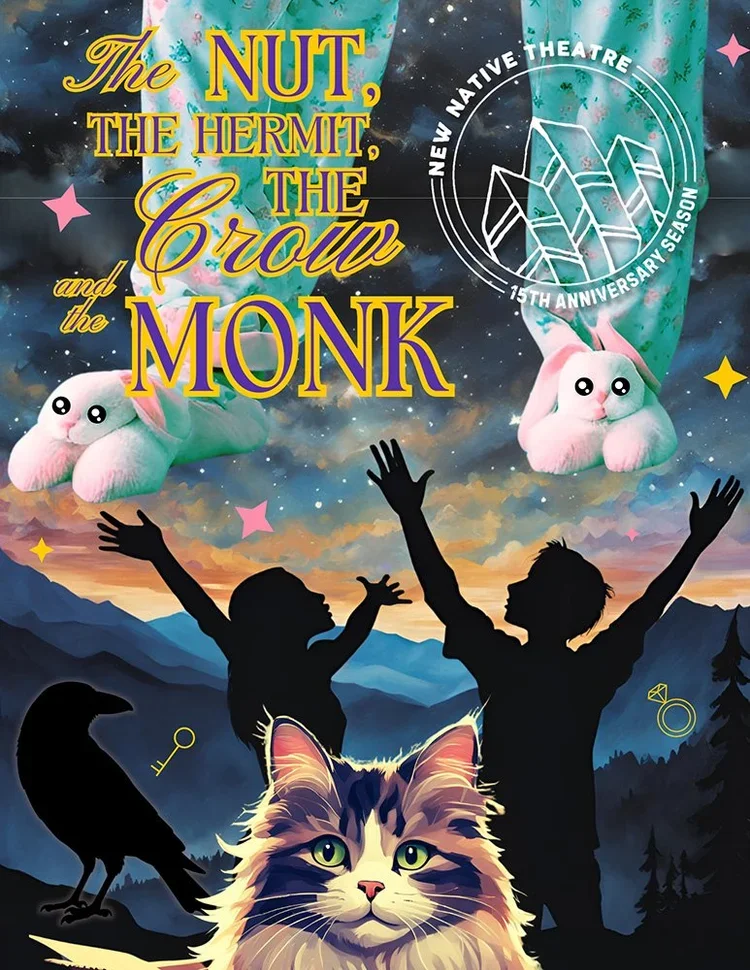 In 2025, New Native Theatre premiered the last play in its 15th Anniversary with a new play, The Nut, The Hermit, The Crow, and The Monk. Written and directed by Rhiana Yazzie, the theatre's founder and Artistic Director, with co-direction by Amber Ball, this comedy follows a zillennial brother and sister on a self-help journey inspired by The Odyssey and Alice in Wonderland. Their adventure is a quest to confront and heal from the boarding school trauma passed down through generations.